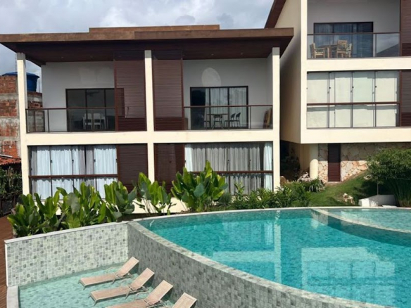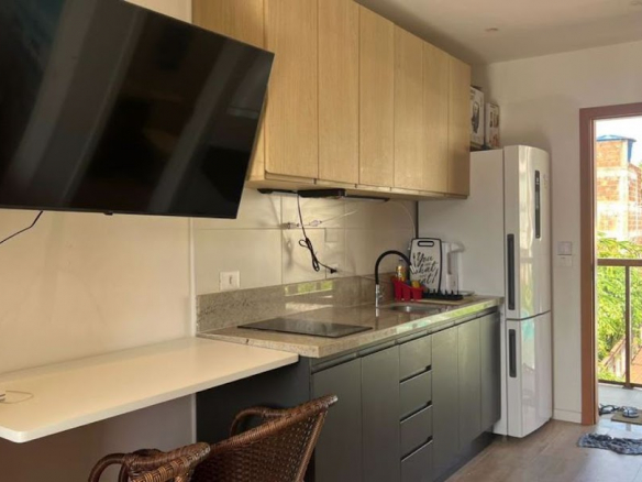 Excellent apartment! Very well furnished, with ocean views, in a condominium with a prime location and a beautiful common area with a swimming pool. Apartment with a private area of 21.75 m² + 11.24 m² balcony with beautiful ocean views; Features 01 integrated bedroom/living room/kitchen, 01 bathroom, and balcony; Fully furnished with high-quality appliances: stainless steel duplex refrigerator, blender, microwave, electric cooktop, water purifier, electric coffee maker; kitchen utensils; double bed, air conditioning, TV, custom built-in furniture (kitchen, wardrobe); bed and bath linens; balcony with ocean views; The condominium is right at the entrance to Morro de São Paulo, next to the Church and at the beginning of the main square; Leisure area with swimming pool; Gated entrance with security.