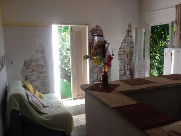 Very charming house with ocean views, 100m from Porto de Cima beach. Built area: 48m². Living room/kitchen, bedroom, bathroom, balcony, and service area. The house is located in a very peaceful area, close to the ocean and the beautiful Porto de Cima beach. 200m from Fonte Grande and 300m from the main square. Fully equipped, providing exceptional comfort and privacy.