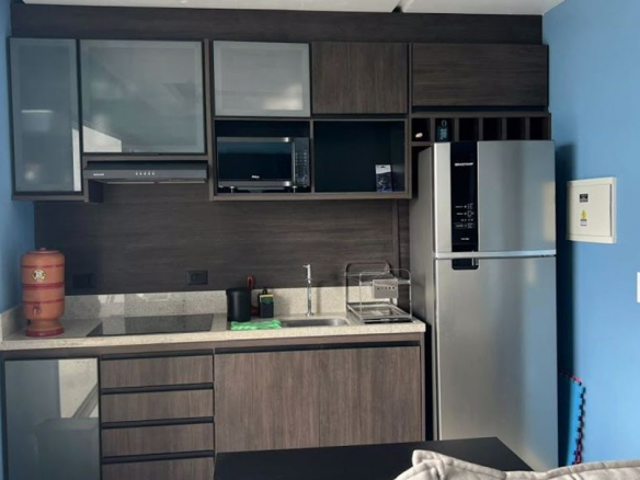 – It comprises 01 bedroom, a spacious living room with integrated kitchen, 01 bathroom, a balcony with jacuzzi, and a small service area; – The condominium offers an excellent leisure area with a beautiful swimming pool.