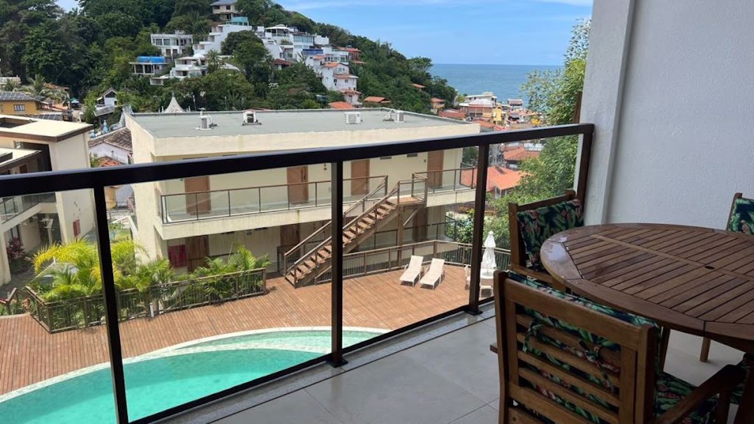 Excellent apartment with a beautiful sea view, located in the Amerigo Vespucci Residence Condominium, which offers comfort, tranquility, security, and a beautiful water park, all in the heart of the village of Morro de São Paulo. Private area: 37.86 m² + 15.15 m² balcony with jacuzzi; Featuring 1 bedroom, living room with integrated kitchen, bathroom, and service area; Spacious balcony with jacuzzi and sea view; Custom cabinetry in all rooms; Bedroom with Queen size bed, wardrobes, and air conditioning; Living room with a double bed, TV, and fan; Balcony with table and 4 chairs, and hydromassage; Kitchen with stainless steel duplex refrigerator, 2-burner induction stove, microwave, water filter, electric coffee maker, and blender; The condominium is located right at the entrance of Morro, next to the Church and at the beginning of the village’s main square, 300m from the First Beach; Leisure area with a beautiful swimming pool; Entrance gate with security; Square with a viewpoint and a gallery with 16 shops at the condominium entrance.