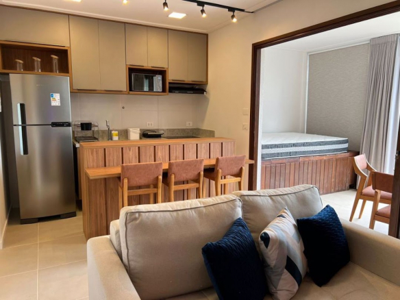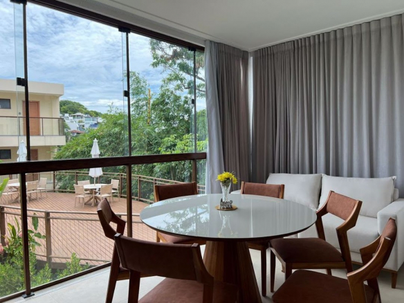 Beautifully furnished apartment with high-end appliances and high-standard furniture, offering comfort, tranquility, and accommodating up to 6 people. Great potential for short-term rentals with high profitability. Private area: 37.86 m² + 15.15 m² balcony with a Jacuzzi. It features 1 bedroom, a living room with an integrated kitchen, 1 bathroom, a laundry area, and a balcony with a Jacuzzi; leisure area with a beautiful swimming pool. The apartment is fully furnished with: The bedroom includes a double bed and a single bed, a wardrobe, and air conditioning; Living room with a cabinet, TV, beverage minibar, sofa bed, air conditioning, wooden counter with 3 chairs, and cupboards; Kitchen with: electric oven, 4-burner induction cooktop, extractor hood, microwave, stainless steel refrigerator, toaster, counter, and sink; Balcony with: Round table with 6 chairs, sofa, and a double mattress (on top of the hot tub). The Amerigo Vespucci Condominium is located right at the entrance of Morro, next to the Nossa Senhora da Luz Church, at the beginning of the main square. It is 300m from the first beach; secure entrance gate; at the entrance of the condominium, there is a gallery with 16 commercial spaces.