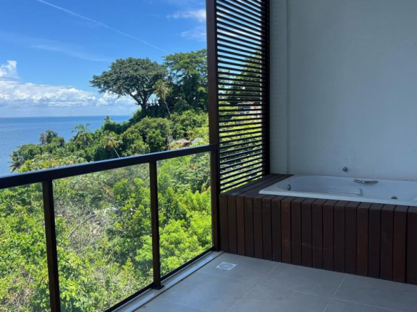 Excellent apartment with a hot tub on the balcony and a beautiful sea view. The apartment is located in the Amerigo Vespucci Condominium in the center of the village, which offers comfort, security, tranquility and a great common area with a swimming pool. – The apartment has a private area of 37.86m² + 15.15m² of balcony with jacuzzi. – It has: 1 bedroom, living room with integrated kitchen, 01 bathroom, balcony with hydromassage tub overlooking the sea and a small service area. – The Amerigo Vespucci Condominium is located right at the entrance to Morro, next to the Nossa Senhora da Luz church, and right at the begpousadaing of the village’s main square. – It is 100m from the pier and 300m from the coastal beaches. – Leisure area with a beautiful swimming pool.3cbr /> – Access to the condominium with electronic concierge. – Gallery with 16 stores at the entrance to the condominium.