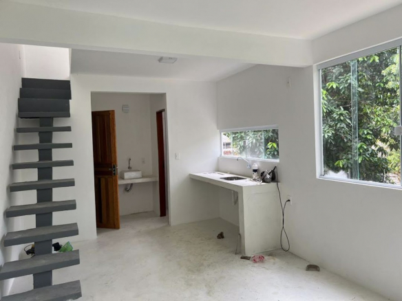 Excellent newly built house with 53.48 m², close to the Botanical Garden and the Lagoon, located in a residential complex with 4 houses, 600 m from the main square. Total built area: 53.48 m²; Ground floor has 35.67 m², comprising: living room, kitchen, 1 bathroom, guest bathroom with sink/shower; veranda; Upper floor has 16.81 m², comprising: 1 bedroom and an uncovered veranda; Fully furnished and equipped. The property is located 100 m from the Lagoon and 500 m from Fonte Grande; Nearby amenities include: pharmacy, mini-markets, bakery, bars, gym, pet shop, and beverage distributors; Fully paved access with public lighting; Electricity, treated water, sewage treatment, and internet are available.