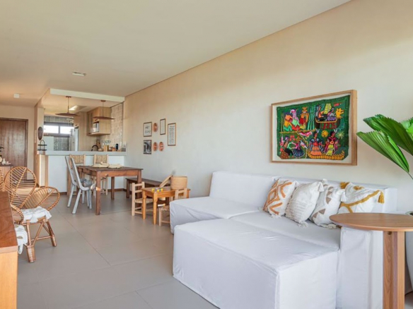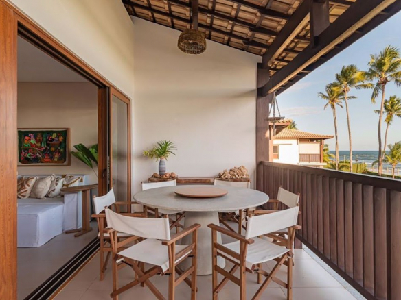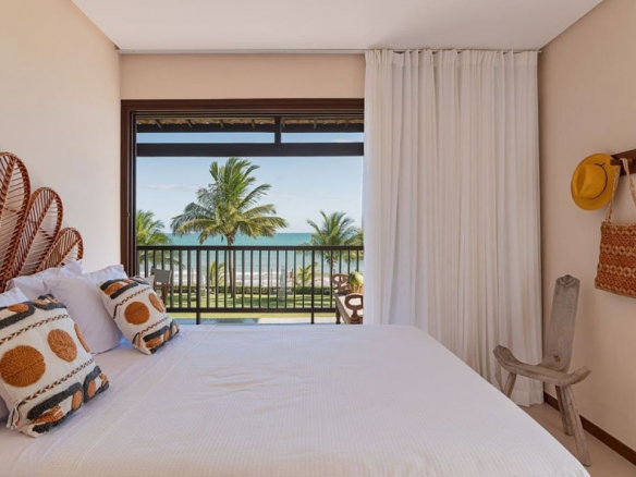 High-end beachfront villa with permanent ocean views, located in the premier condominium in Itacimirim. 100 m² apartment; 3 bedrooms, including one suite; recently renovated; turnkey and fully equipped for immediate Airbnb rental; 2 covered parking spaces with storage. Condominium with full infrastructure: gym, playground, Hijau stone infinity pool, gourmet area, and Tidelli furniture. Public beach tennis court in front and visitor parking; beach with natural pools, lifeguards, and a surf school directly in front of the condominium.
