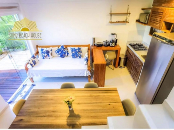 – Ground floor: Living room with integrated kitchen, one bedroom with a double bed, one bathroom, and an excellent covered balcony;