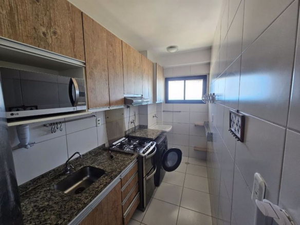 Apartment with 2 bedrooms (including 1 en-suite), a spacious living room, guest bathroom, balcony, planned kitchen, and service area;