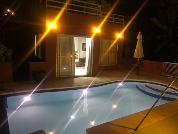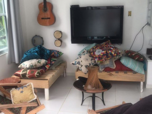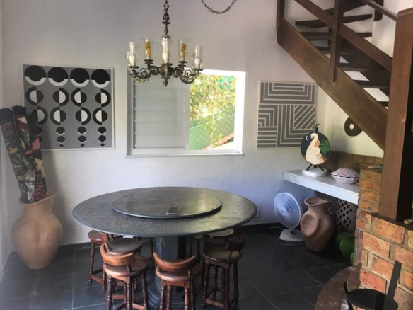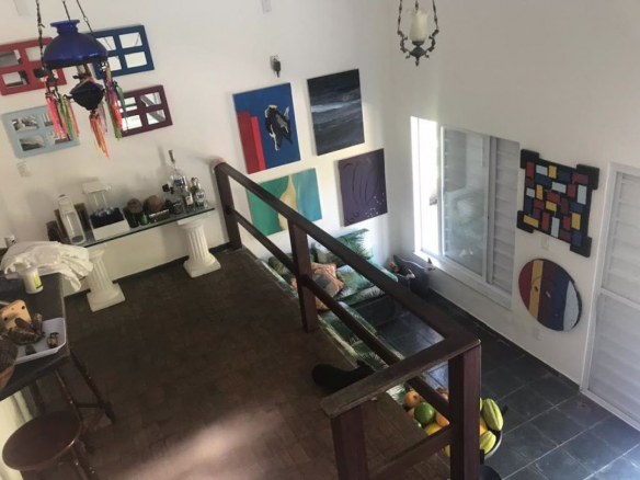 Excellent 675 m² plot within a condominium surrounded by lush greenery in the center of the village, located close to the beaches and less than 300 m from Morro’s main square. The 675 m² plot is fully fenced and features a beautiful garden with some fruit trees. The house has 200 m² of built area, distributed as follows: Ground floor: 30 m² Massaranduba hardwood deck, split-level living room, spacious open-plan kitchen, small suite with independent entrance, service area, laundry room, and pool pump room. 1st floor: Spacious suite with large balcony + suite with independent entrance, balcony with lighthouse view, and access deck to the pool. Pool area with a spacious glass-enclosed lounge, pool with hydromassage, covered area with barbecue, gourmet counter, and bathroom. 2nd floor: One suite with hydromassage bathtub, adjoining space, large balcony, and lookout. All suites have air conditioning; caretaker’s house with bedroom/living room/kitchen in one open space, small mezzanine, and bathroom; 5,000-liter rainwater harvesting tank; 20,000-liter water tank. Upper water tank with 3,000 liters; solar water heating for hot water in the suites’ bathrooms; two solar-powered peripheral pumps (pumping to the house and pool); pool Jacuzzi equipment. Entire area fenced and walled, paved access paths, retaining structures, storage room, dog house; furnished house with beds, TV, washing machine, freezer, refrigerator, minibar, some furniture, utensils, …..