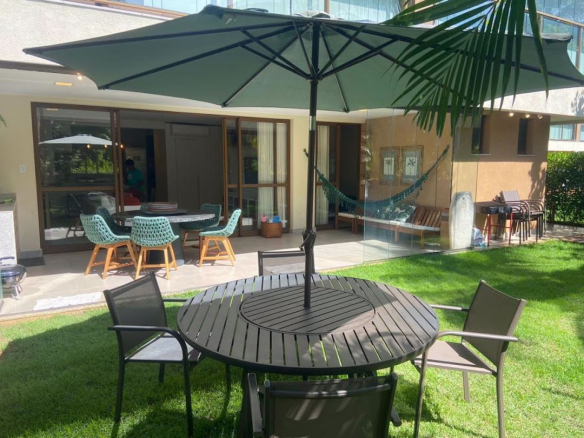 Beautiful furnished ground-floor apartment located in one of the best condominiums in Itacimirim. Apartment with 140 m²; 3 suites; Ground-floor apartment; Air conditioning in the bedrooms; Powder room; Living room; Balcony; Kitchen; Garden; 2 parking spaces; Laundry area; Service bathroom; Condominium: Pool with deck, green area, 24-hour security, children’s playground, beach access, gym, laundry room;