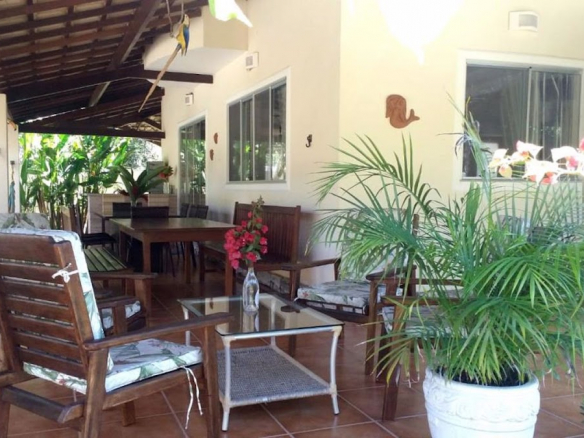 Excellent two-story house in a beachfront gated community. Total lot area of 1,125 square meters. Main house with 330 square meters of construction across 2 floors. Ground floor: 1 living room with custom cabinetry, 1 dining room, 1 office with custom wardrobes, 1 spacious, well-ventilated and bright kitchen with custom cabinets, 1 pantry, 1 powder room, 1 kitchen gourmet area, 1 main gourmet area, bar, and covered verandas surrounding the entire house. 1st floor: 1 master suite with a walk-in closet, balcony overlooking the Spa and garden, custom wardrobes, mirrored cabinet, etc. Two spacious bedrooms with balconies and large custom wardrobes with overhead storage. 01 spacious bathroom. Annex house (used for summer rentals) with 100 square meters, featuring 03 bedrooms, 1 living room, 1 kitchen, and 2 bathrooms. 1 ground-floor apartment with 03 rooms that can be converted into a studio. It includes a 15-meter covered garage with an iron gate. 01 beautiful new 20-meter Spa with a whirlpool tub for 2 people, non-slip flooring, enclosed with smoked glass, veranda, thatch roofing, and a barbecue grill. Features 01 artesian well with potable water at 85 meters. Faucets throughout the garden, exotic and tropical plants, quiet location, and a 24-hour gatehouse.