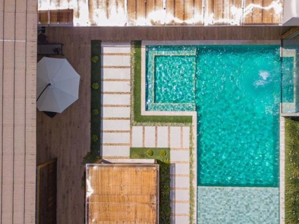 – Large veranda overlooking the pool;