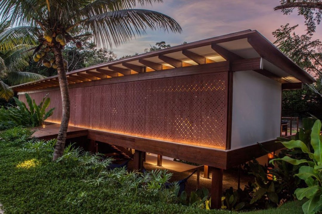 Designed by award-winning architect André Luque, it is just a 10-minute walk from the famous Quadrado and 10 minutes from the beach. The house is located atop the cliffs of Trancoso, surrounded by the Atlantic Forest, and features a unique design that fully respects the topography and vegetation of the site. The natural slopes of the land have been utilized, and the architecture blends harmoniously with the environment. 6 Suites 400 m² Built Area 1,600 m² Land Area Swimming Pool 24-hour Security Altos de Trancoso Condominium