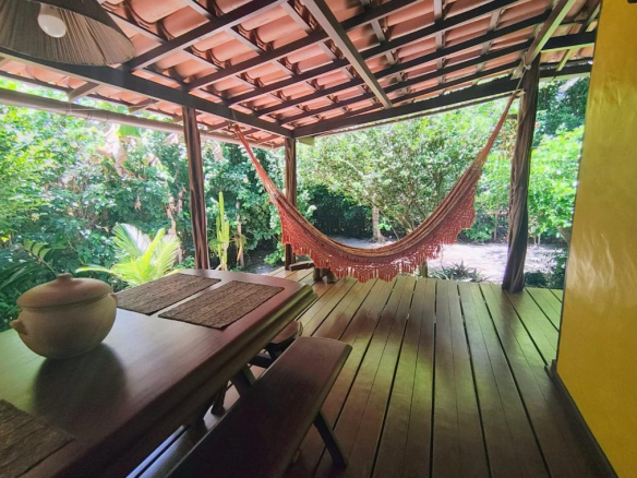 90m² house with 525m² land – Boca da Barra Comfort, charm and a privileged location in Boipeba! This beautiful 90m² house combines the best of a solid concrete structure with the charm of fine wood (Massaranduba and Cumaru), known for their durability and impeccable finish. The architectural design makes the most of natural light and ventilation, creating a cozy and welcoming environment.0a