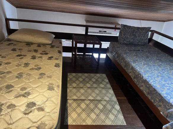 • Wooden mezzanine, fully lined, with two single beds and closet
