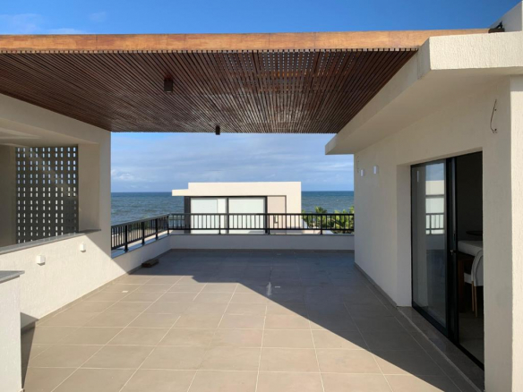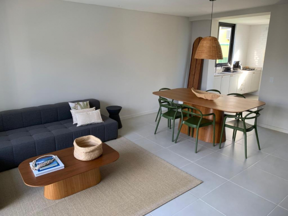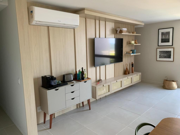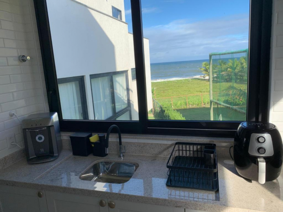 Excellent apartment with balcony in Itacimirim, less than 30 meters from the beach with sea views from the living room, kitchen and master and bathroom fully furnished.3c/p>