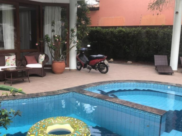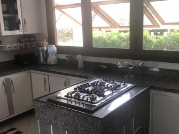 Interior: 1 Living room, 1 dining room, 1 TV room, 1 hallway, 1 access to special wooden stairs, 1 bathroom, 1 bedroom that can serve as an office and has private access with balcony, 1 kitchen equipped with cabinets built-ins and cook top stove in Ilha, 1 pantry, 1 large service area, 1 garage for 3 cars, and over the garage 1 laundry room that can also be used as a studio.