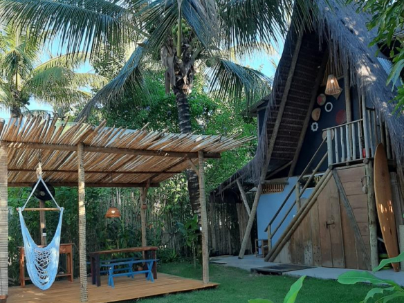 - Corner lot with a total area of 1.45m², 60 meters from the sea, with a charming bridge as the main entrance, surrounded by flowers and an area surrounded by bamboo (cane brava);