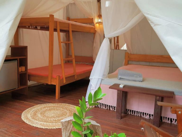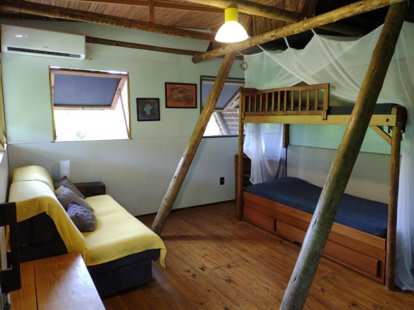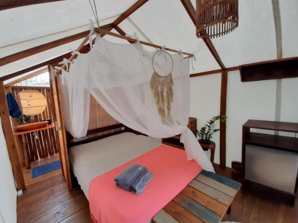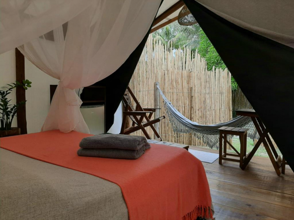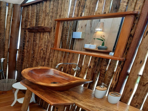 - Pousada with 2 independent bathrooms with Glamping style chalets, with air conditioning, minibar, mosquito net, balcony, very charming bathroom made of wood;