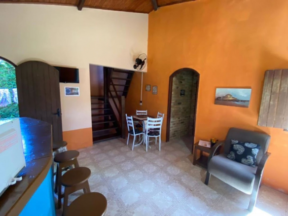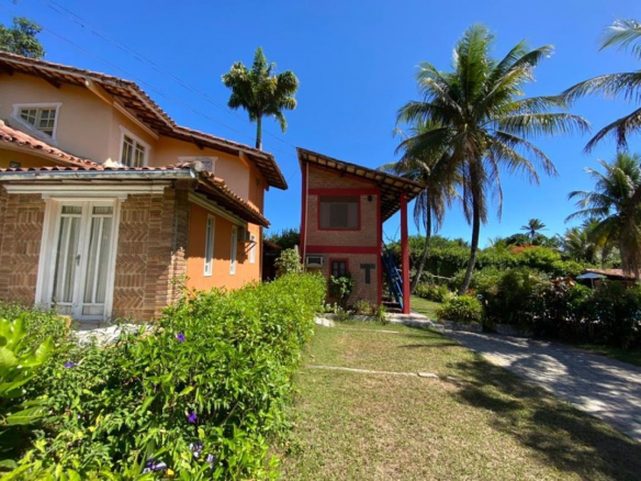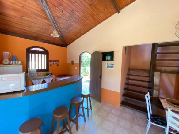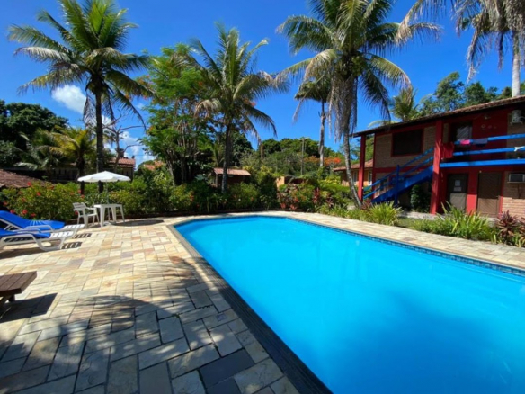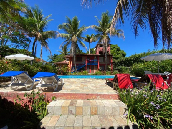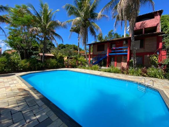 Guesthouse/Condominium located 700 m from the center of Arraial d’Ajuda. • 08 residential units, consisting of 07 houses and 02 suites. • Open-plan living room and kitchen • Suite with balcony • House: bedroom, bathroom, living and dining room, integrated kitchen, and balcony • Leisure: Swimming pool with deck, covered veranda and barbecue area, breakfast kiosk. • Beautifully landscaped garden • Structural support • Storage room and laundry. • Covered garage for 08 cars • Individual power system • Artesian well • All houses are furnished and equipped with ceiling fans. • Voltage 220 volts