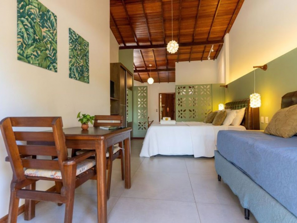 The inn is situated in a prime location, just one block from the stunning natural pools of Taipu de Fora and surrounded by lush nature.