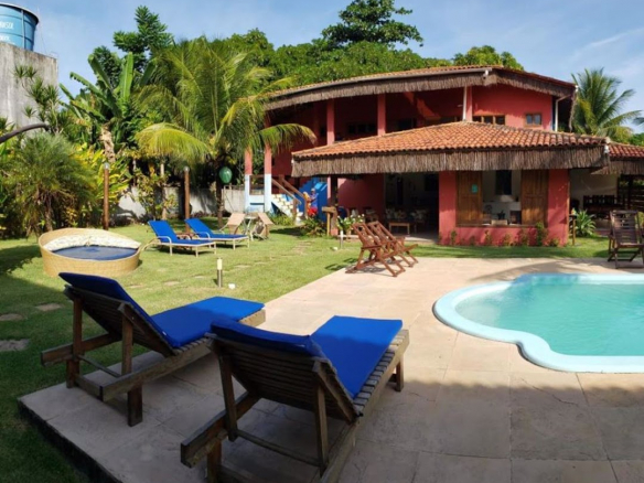 Beautiful guest house located in Barra Grande, 400 meters from the village and 200 meters from the beach—one of the few places on the Brazilian coast that maintains a landscape of natural beauty and paradisiacal beaches. • Lot Area: 1,400 m², built area: 600 m²; • 11 Apartments, including 9 suites (double, triple, and quadruple) and two master apartments, each with 2 bedrooms, a living room, an equipped kitchen, and a bathroom; • All apartments feature a balcony facing the pool and garden area; • All rooms are equipped with air conditioning, fans, TV, and a minibar; • Main Building: reception, full kitchen with pantry, breakfast area, equipped laundry room, storage room, swimming pool, Wi-Fi, monitoring cameras, and private parking area;