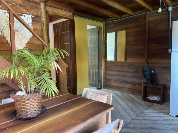 • Land floor with 40m² (5m X 8m) containing: Balcony with table and hammock, Living room with wooden table, Full kitchen, 1 bathroom, stairs to the 1st floor, service area with sink and shower.