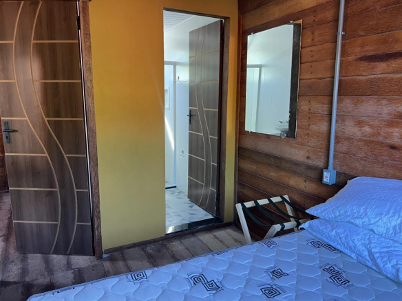 • A newly built chalet, located on a 60m² plot of land, with a built area of 58m², two floors, built in hardwood, glass doors and windows, and a masonry bathroom.