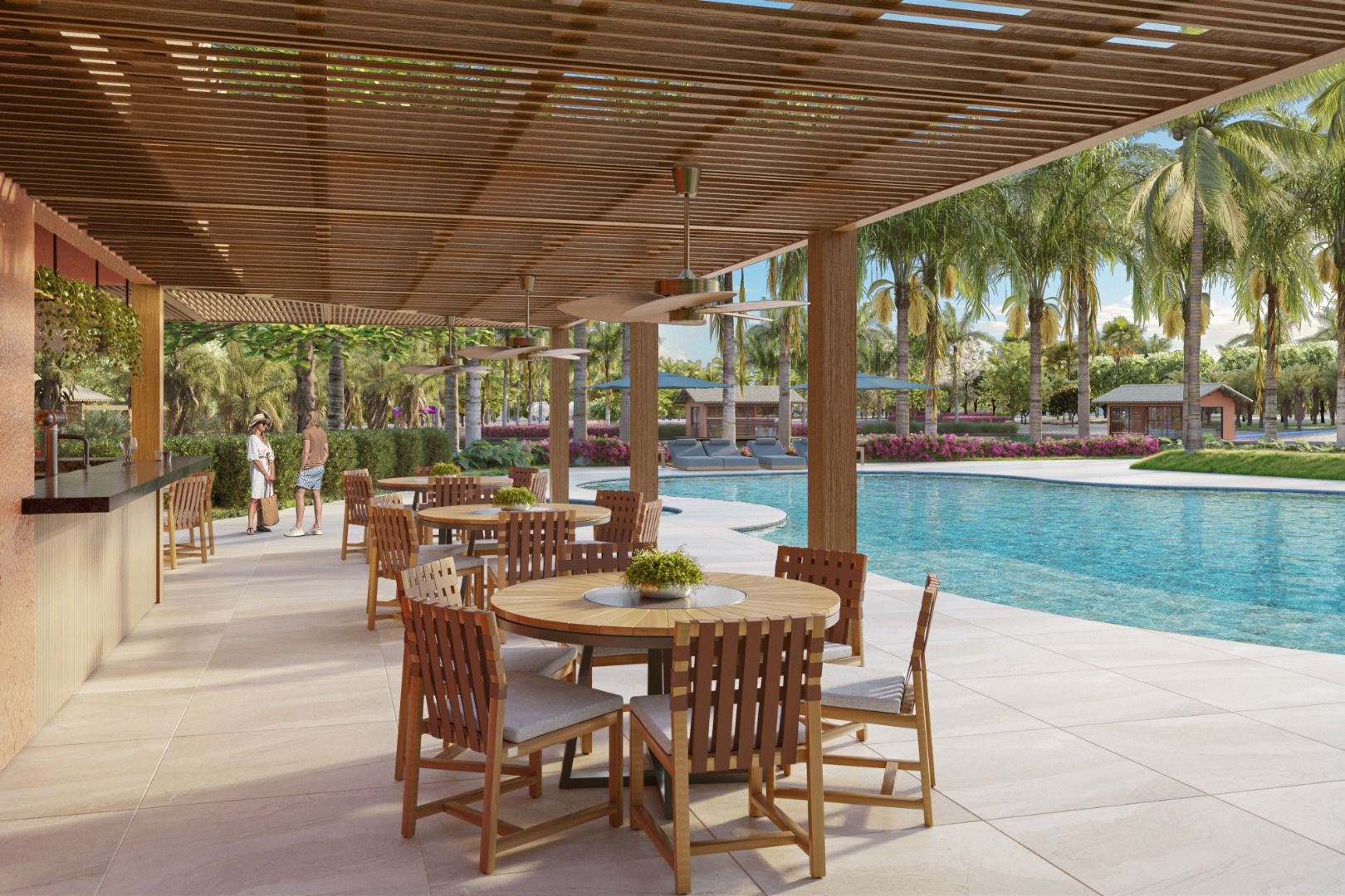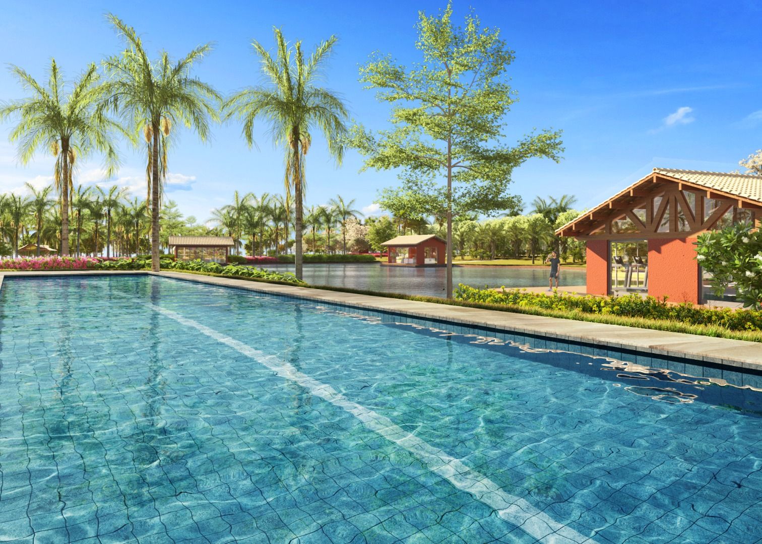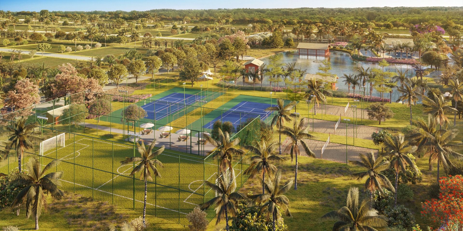 Gated community integrated with the lagoon, featuring lush landscaping and environmental preservation;