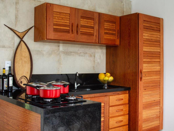 - 01 Bedroom (with closets), dining room integrated into the star room, kitchen (fully equipped with: cabinets, refrigerator, stove, etc.), guest bathroom and external service area;