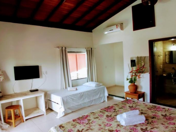 - b”>Distribution of the pousada: 1 single bathroom, 1 double bathroom, 1 triple bathroom, 7 quadruple bathrooms and 2 bathrooms for 6 people;
