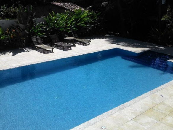 The pool is made of reinforced concrete, all covered in ceramic, with LED lighting, a jacuzzi for 6 people and a waterfall;