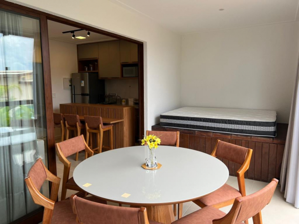 - It has 1 bedroom, living room with integrated kitchen, 1 bathroom, laundry area and balcony with jacuzzi