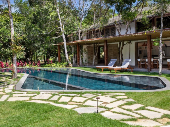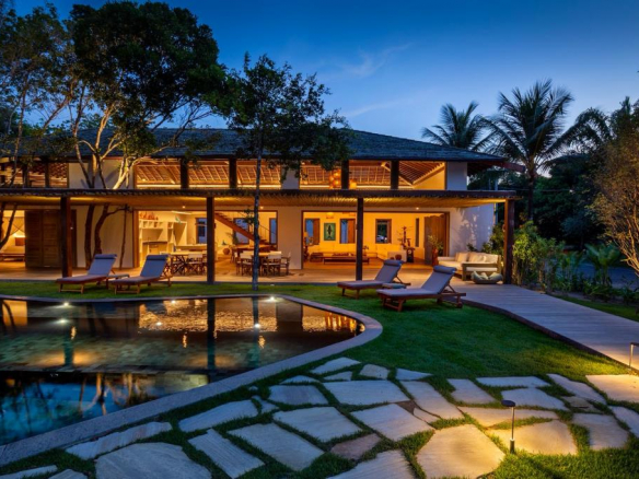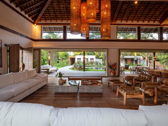 Charming 1,090m2 house within the premier high-end condominium in Trancoso – Altos de Trancoso. This condominium is the most sought-after vacation rental due to its location between the square and the beach. Complete infrastructure and beautiful landscaping.