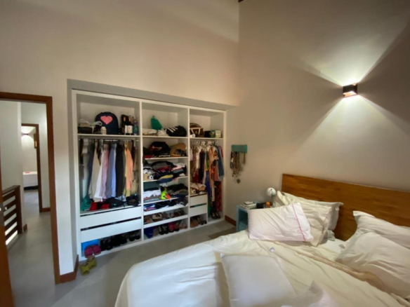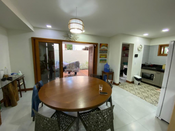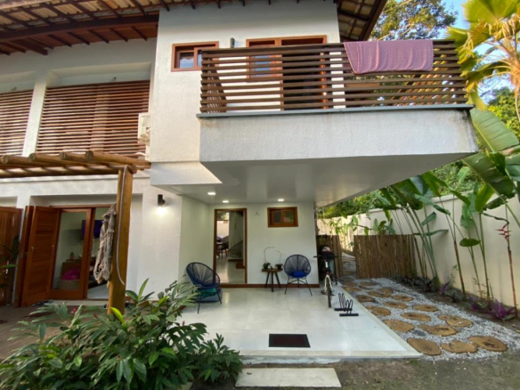 House in a condominium 100 meters from the beach in Arraial d´Ajuda 172m² of construction on two floors, 1 bathroom, 2 bedrooms. Upper floor: Suite with balcony, 2 bedrooms and bathroom. Land floor: Integrated kitchen with a large dining room, guest bathroom, TV room with balcony and service area. Space ready for private Gourmet Area.3cbr style=”color: #888888;” /> Leisure: Swimming pool with large wooden deck, sun loungers, table with chairs and parasol. Structural Support: External and internal condominium monitoring system, electronic gate, 1 parking space for each house, intercom with camera. The houses were designed according to the open-plan concept, providing large and integrated spaces in the living area.