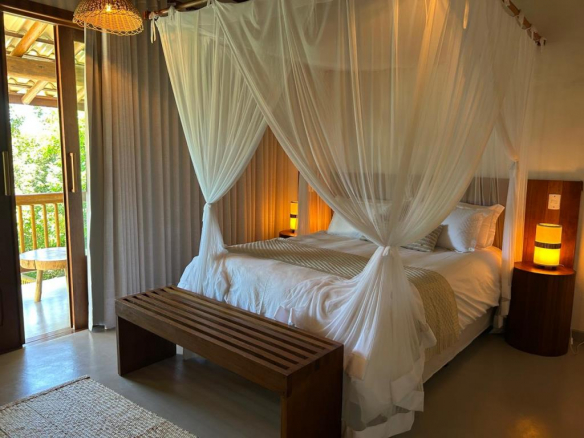Beautiful house with the beautiful style of Trancoso surrounded by charming greenery inside a condominium close to the square.