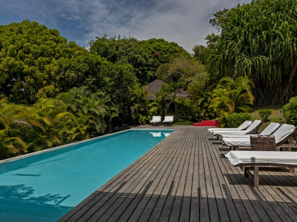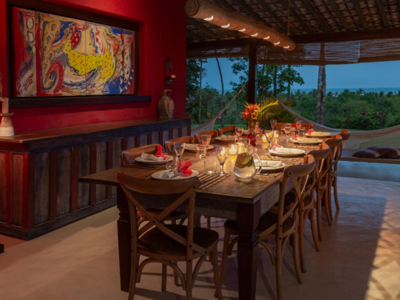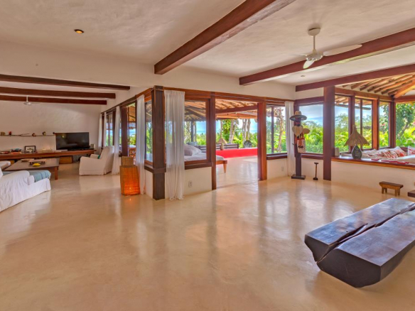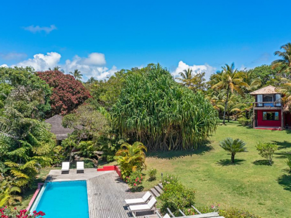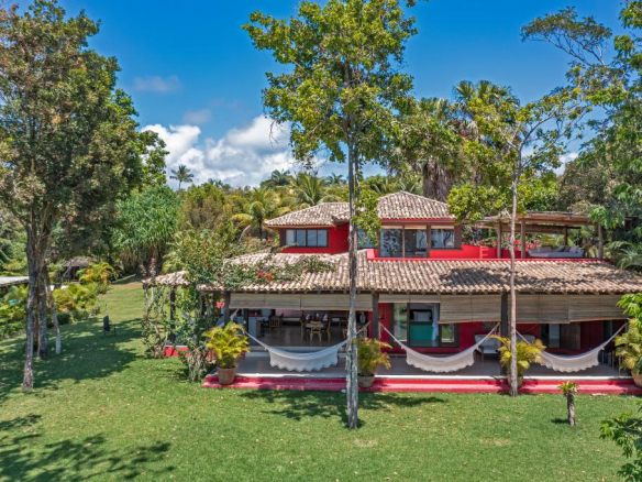 – The property is sold with furniture and utensils, except for some paintings and personal belongings. – The property has a 180º view of the sea, is located in Trancoso, the most exclusive summer resort in Brazil; exactly on Rio da Barra beach, 500 meters from it and with beach support.