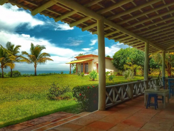 Fantastic property with panoramic ocean views. 30,000 m² with 130 meters of ocean frontage. Main house of 500 m², rustic style, large open living room with kitchen and bar. Two bedrooms, large suites with walk-in closets and double sinks. Front verandas with beautiful views. A charming, fully equipped cottage, complete with satellite TV and internet. For guests or seasonal rental with two bedrooms, living room, kitchen, walk-in closet, and two verandas. An artist’s studio for work or seasonal rental. 55 m² complete with bathroom, veranda, and fantastic views. Relaxation area with capacity for 6 hammocks and 2 outdoor showers. Garage for two cars. Tropical garden with 200 coconut palms, 20 mango trees, 12 large cashew trees, 20 lemon and 20 orange trees, acerola, avocado, lychee, Jamaican pepper. Giant bamboo. And other tropical fruit trees. The property has several areas for commercial leisure development, construction of cottages and/or luxury condominium, or inn and preservation areas. There is the possibility of purchasing adjacent land from the same owner with an additional 20 hectares and 700 m of beach frontage, for subdivision, luxury condominium, hotel, or resort. Located only 60 m from the beach and 800 m from the center of Cumuruxatiba