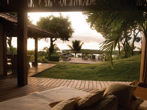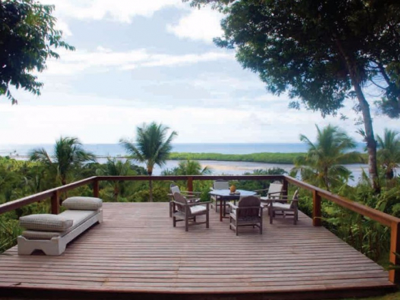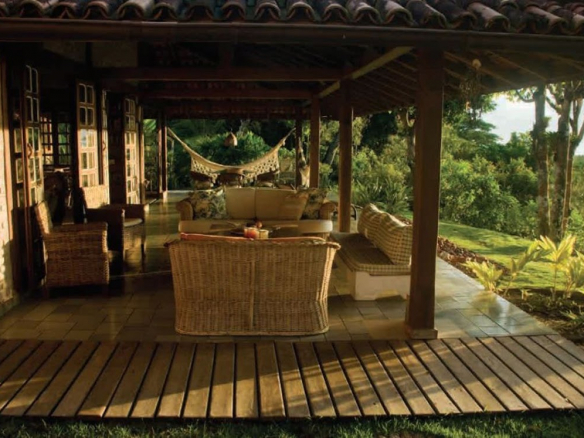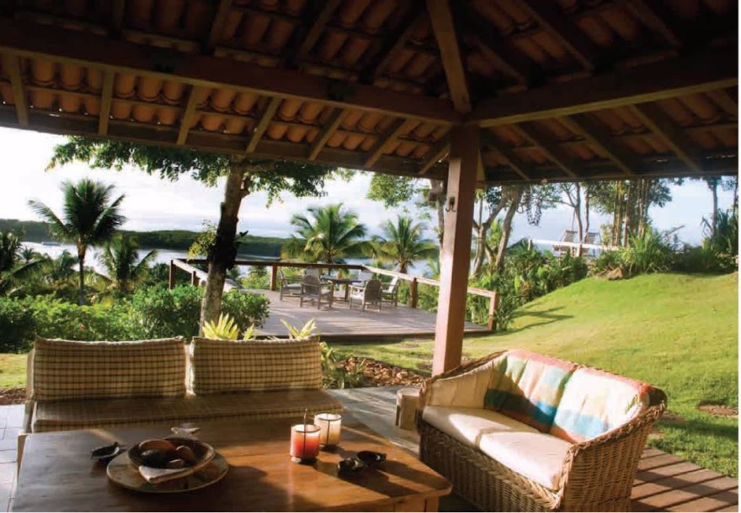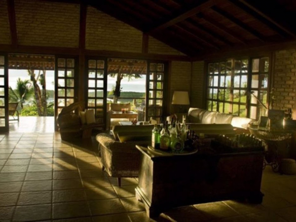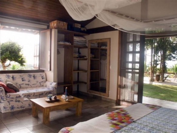 High-standard house with exclusive access, resembling a luxury condominium, built on a hilltop with privileged and exclusive panoramic views of the ocean and Atlantic Forest. Built Area: 615 m² + 214 m² deck. Spacious living room with 5m central ceiling height, integrated by a beautiful deck that, when the doors are open, harmoniously blends with the natural views of the location. 4 bedrooms including 3 suites, 2 spacious and bright kitchens, one industrial-style, ideal for large events with ocean views, guest bathroom, powder room, pantry, laundry room. Upper Floor: 70 m² studio, library, spacious master suite with high ceiling, large balcony with a small garden, air conditioning, magnificent views of the ocean, mangroves, and Paradise Island. Master suite bathroom features beige marble countertop with two sinks, whirlpool tub, large windows, and a stunning ocean view. Walk-in closet. Air conditioning and ceiling fans in all suites and bedrooms. 80% of furniture included in the sale price. Solar water heating system throughout the house. Artesian well with modern filtration system, potable water. Alarm system. Satellite TV (SKY). Internet/Telephone. Garage. Electronic gate. Access infrastructure to the house: paved street. Extensive garden with many well-maintained tropical plants from the region. Kennel with capacity for four dogs. Caretaker’s house: 80 m². Adjacent to the house, a 5,000 m² lot for building one or two additional houses. Property appreciation in recent years has been substantial and continues to rise, especially after the German national team trained at Campo da Bahia during the 2014 World Cup.