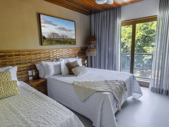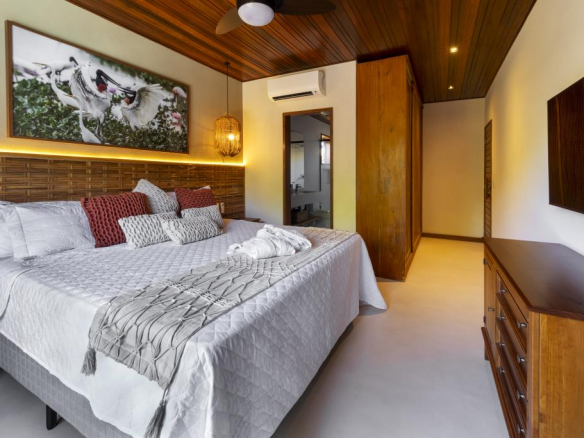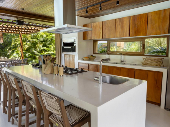 This could be your family’s Dream Beach House, located in a condominium right on the sand of the finest beach in Praia do Forte, Bahia. Its Sculptural Architecture transforms it into an Imposing Work of Art. The integration between the Living Room, with double height, and the Gourmet Space provides spaciousness and allows cross ventilation, providing thermal and environmental comfort. The 7 Bathrooms allow an entire family to be comfortably accommodated. The pergolas put on a show of their own and provide comfort for a good chat.3cbr /> The Garden with Praça da Lareira and Redário is next to a large preservation area of the Atlantic Forest. The House is located in a condominium with Exclusive Access to the best beach in the region and has a complete infrastructure for your family’s leisure and tranquility. The development has an incredible lagoon bordered by a cycle path that guarantees cycling in the best landscape.3cbr />