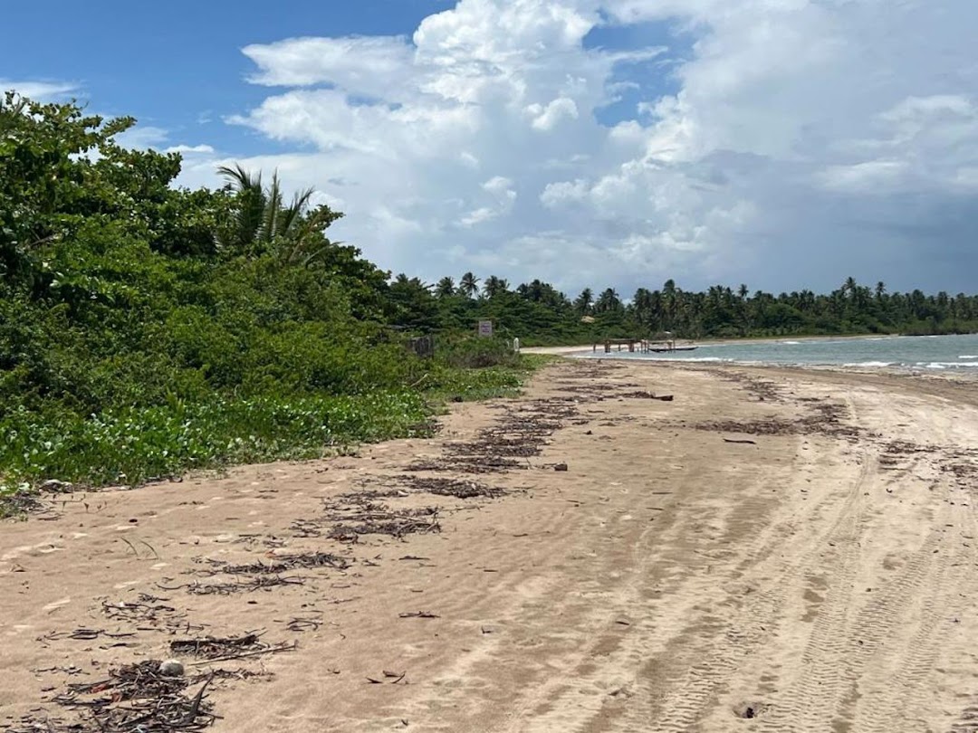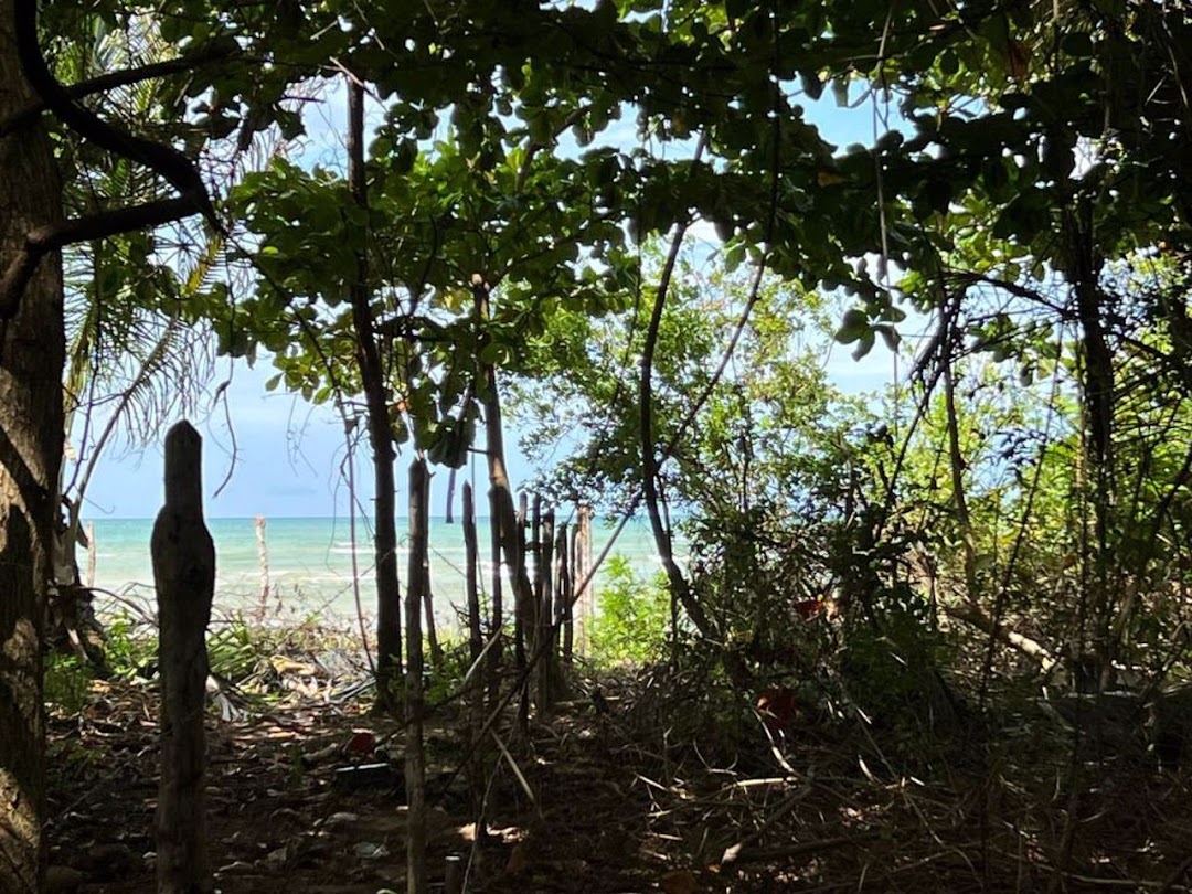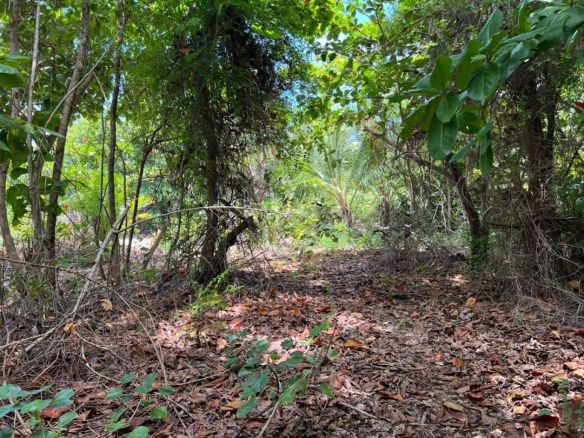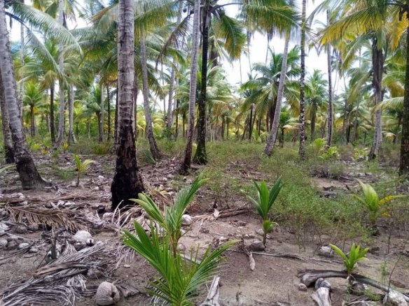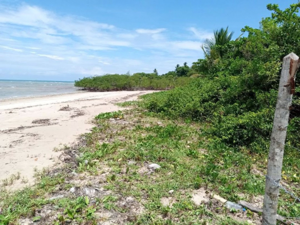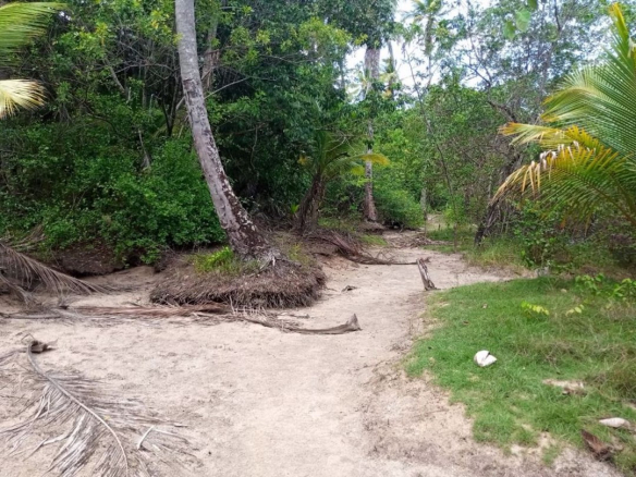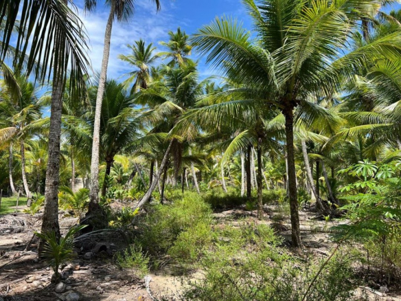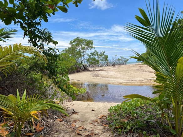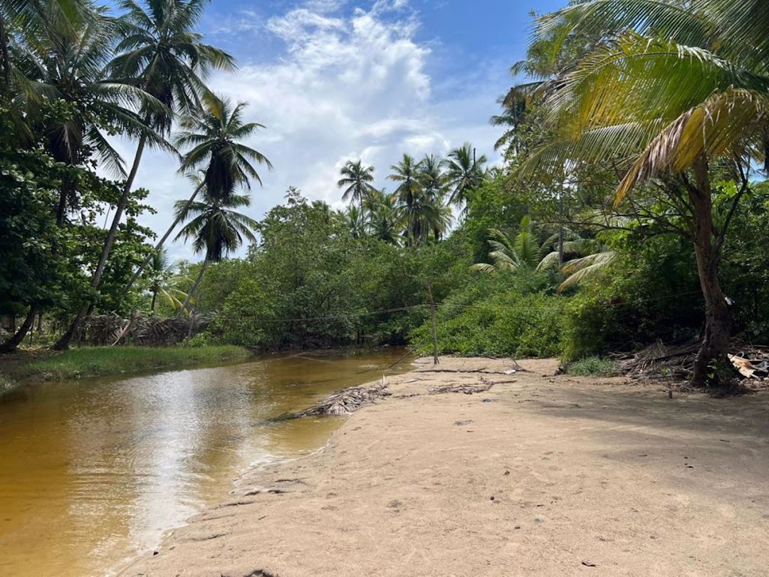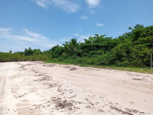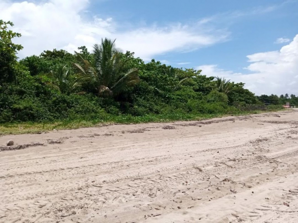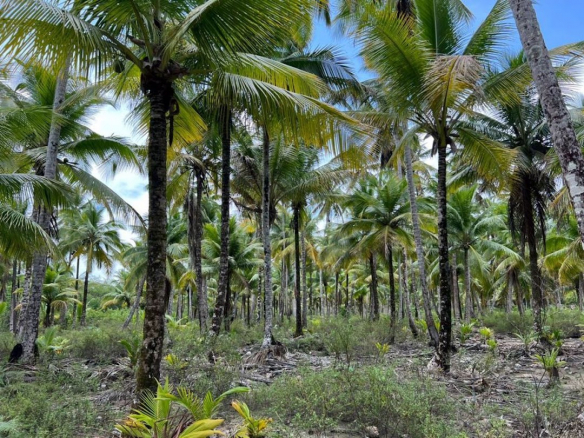 – 2.5 hectares, mostly covered by a large coconut grove, bordered on one side by a stream that flows into the sea, with mangrove trees that create a beautiful landscape, and in front, a stunning white-sand beach;