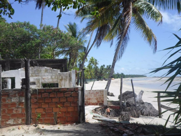 It has two old, unfinished oceanfront structures, and 3 bungalows in the interior area;