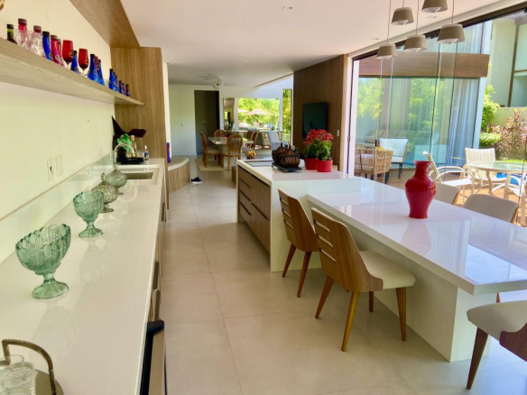 Luxury Residence with Exclusive Design – Ready to Move In Discover the pleasure of living in a home designed with meticulous attention to detail, where luxury and comfort meet in every space. This magnificent property, never rented before, offers a perfect combination of modern design and high quality finishes, situated on a plot in one of the best condominiums in Praia do Forte and with a generous built area of 498 m².