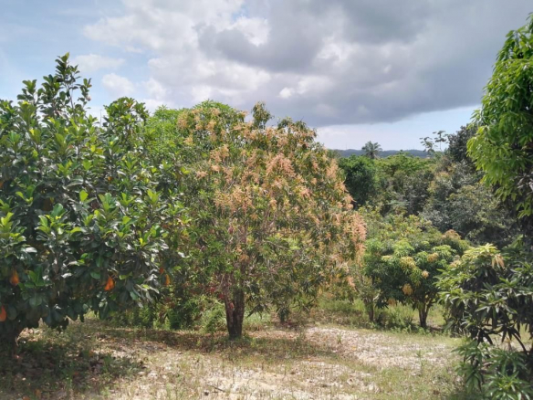 Fully wooded land with various fruit trees and an established orchard;