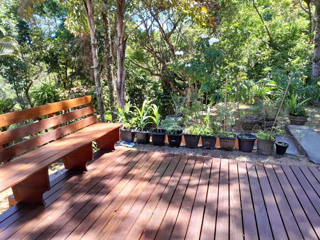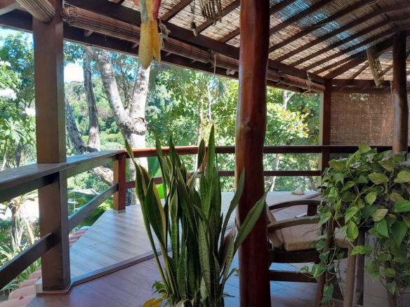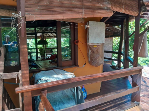 – Main house: a spacious living area with an open-plan kitchen, surrounded by verandas, one bedroom, and one bathroom;