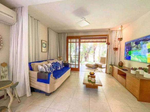 The Reserva Praia do Forte condominium features complete infrastructure, tennis court, swimming pools, fitness center, game room, restaurant, playground, and electric cart service. • Air conditioning in all rooms • Duplex with balcony • Two suites • Kitchen and service area • Side balcony • Photovoltaic Solar Energy • 2 parking spaces • Furnished