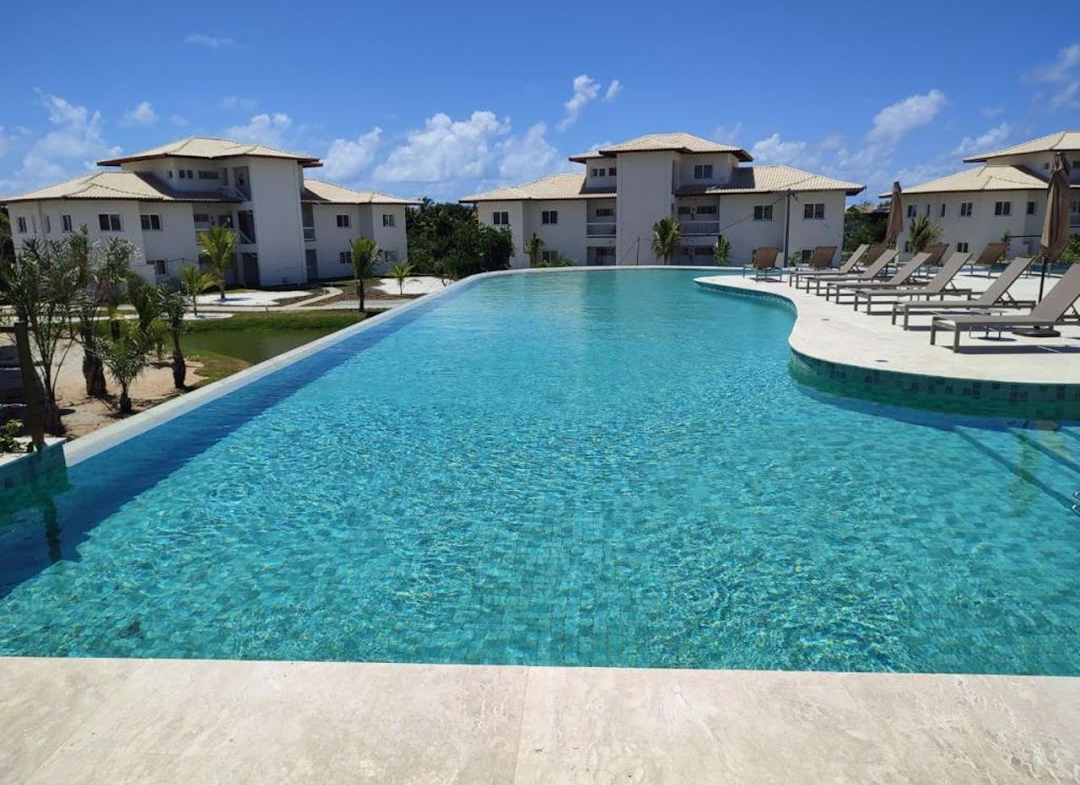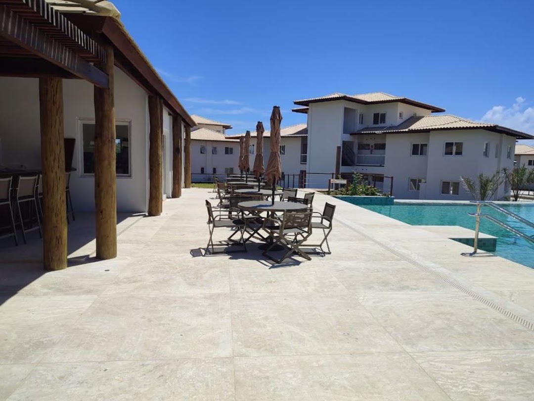 Ground floor apartment in a gated community located in Praia do Forte, 500 meters from the sea; • Ground floor apartment with 91 m²; • 2 bedrooms (both en-suite); • Living room; • Kitchen; • Guest bathroom; • Balcony; • Service area; • 2 parking spaces; • Condominium with excellent leisure facilities, large swimming pool, party room, children’s area, event hall, fitness center, game room, tennis court;