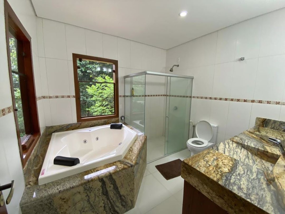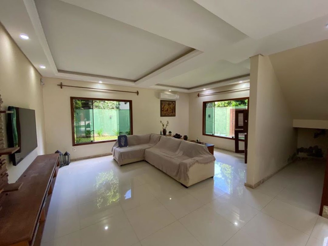 High-end, fully furnished home. • Property with an 814m² lot; • Built area of 477m², two floors and 4 suites; • Upper floor: master suite with walk-in closet, balcony, whirlpool tub, and Zen space; secondary suite with balcony; • Ground floor: reversible room for an office, powder room, living room with two environments, open-plan kitchen with hot water, internal laundry, and a veranda surrounding the house; • Gourmet Area: swimming pool with deck, gourmet space with wood-burning stove, pizza oven, barbecue grill, and one suite; • Excellent standard construction with solar energy, custom furniture in Angelim Pedra, Peroba wood doors, porcelain tile flooring, and a pitched slab roof; • Solar heating, security system with monitoring, electric fencing, 10,000-liter reservoir plus two 1,000-liter water tanks and a 600-liter boiler, office; • Covered parking (2 spaces).