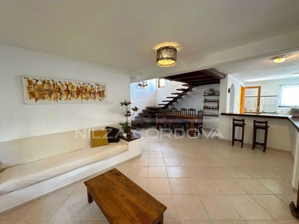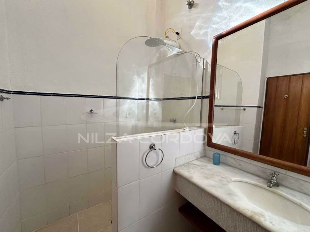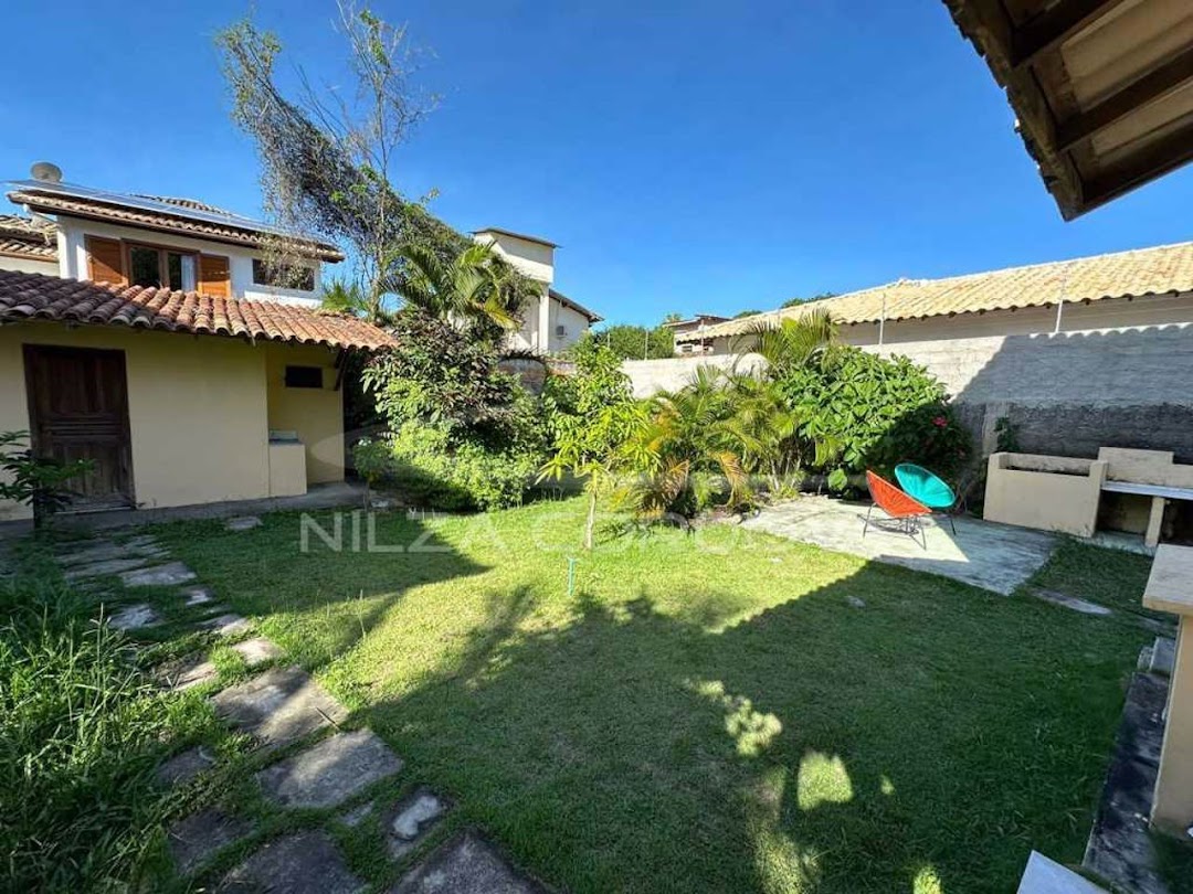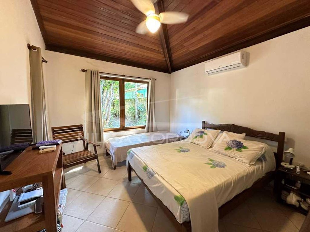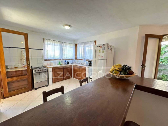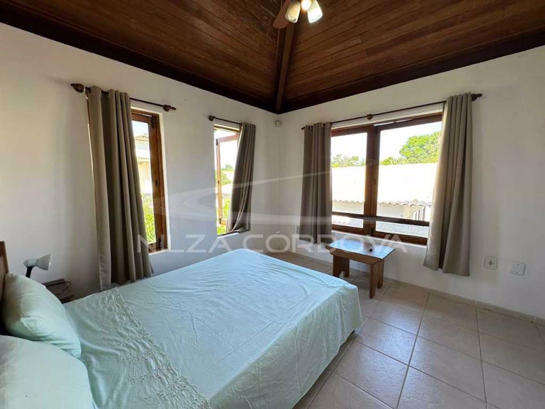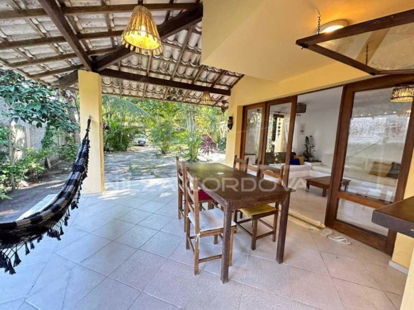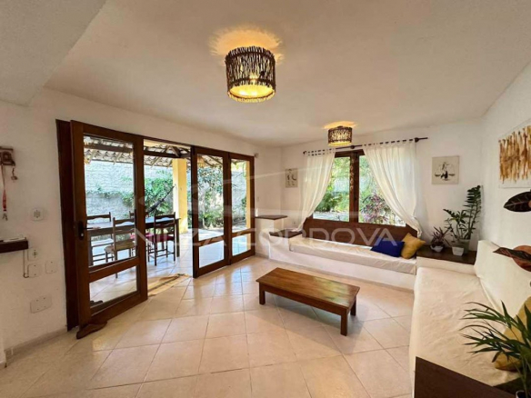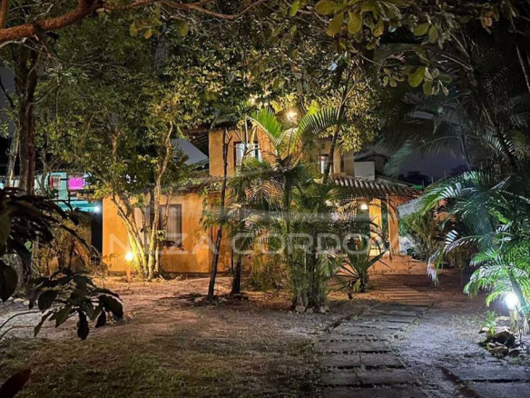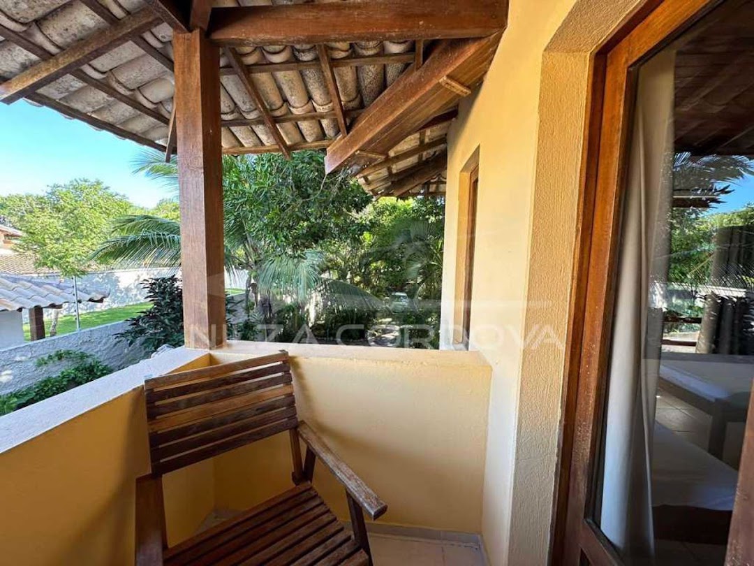Excellent house located 100 meters from Arraial D’Ajuda beach • 750 m² total area and 175 m² built area • Upper floor: 2 semi-suites with split air conditioning and balcony. • Ground floor: Bedroom with air conditioning, guest bathroom, TV room with sofa, dining room, American kitchen, service area and balcony. Independent external suite • Leisure: Lawn garden and fruit trees, balcony overlooking the garden, lighting. • Structural Support: Walled, by