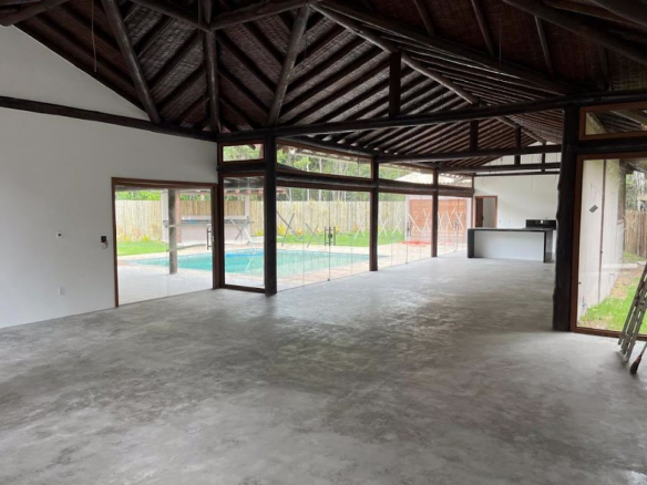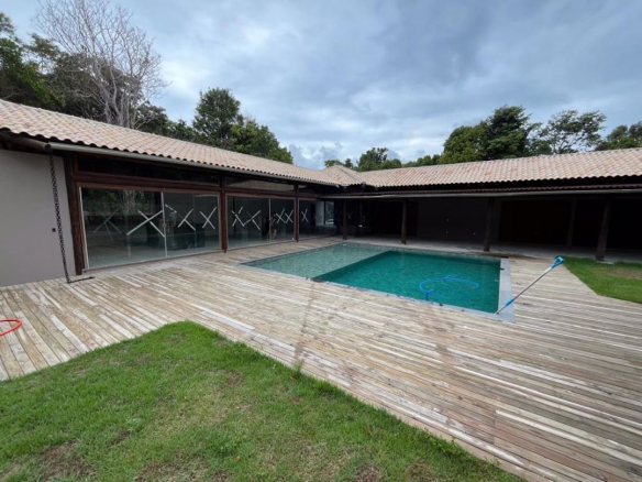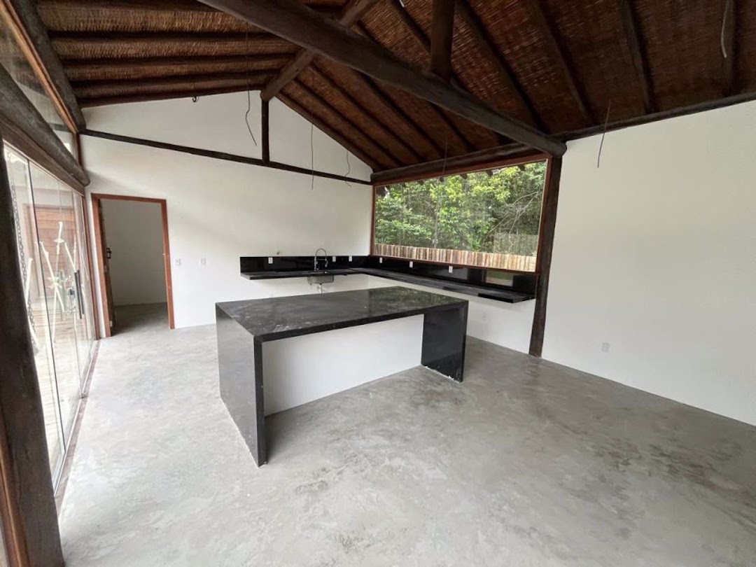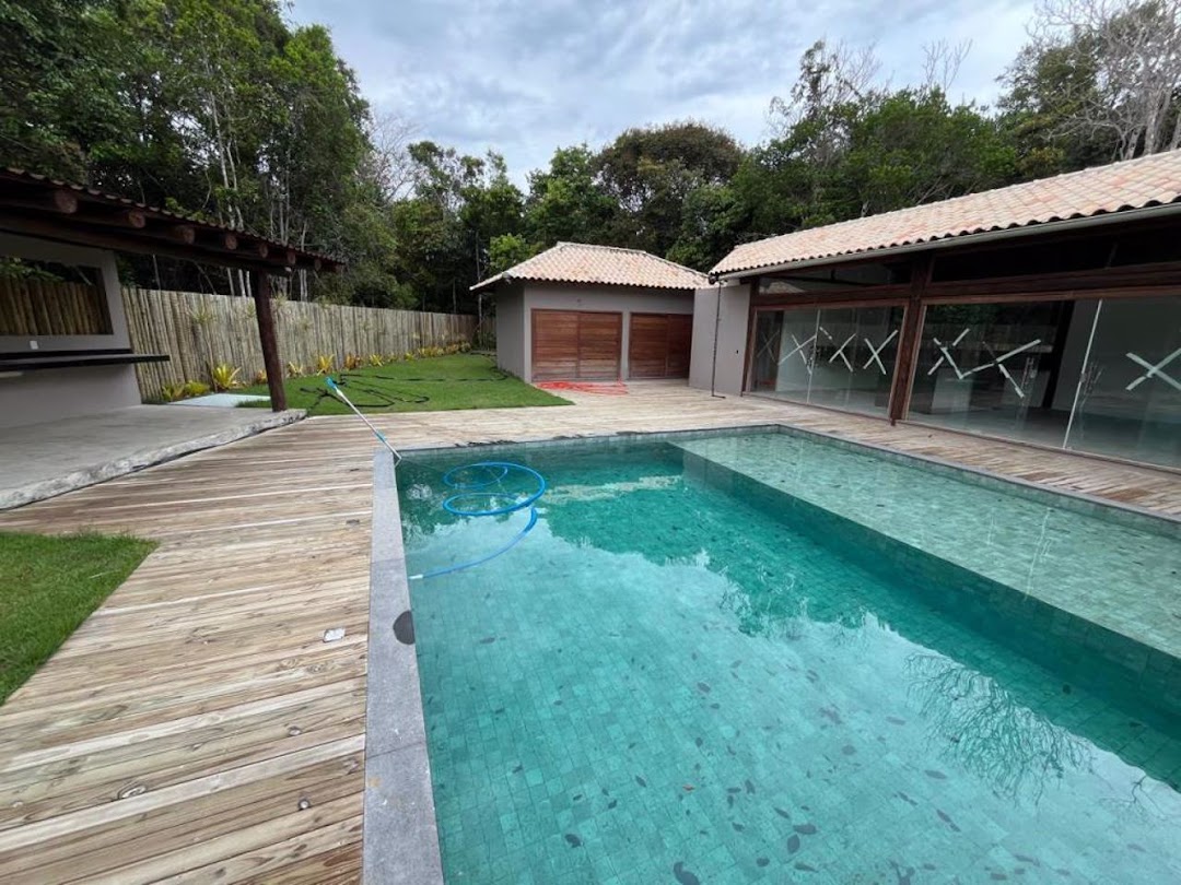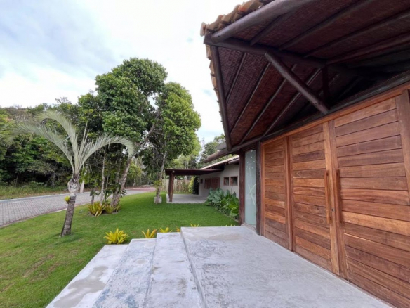 Property located 5km from Arraial d’Ajuda and 13km from Trancoso, within a gated community surrounded by nature and exuberant flora. The design allows for pleasant sunlight exposure, creating a welcoming atmosphere and a great sense of well-being. An ideal place for those seeking comfort, nature, and the freedom to live. • House with 227m² (New construction – never occupied) • Outbuilding – 34.88m² • Gourmet Area – 15m² • Walkway with pergola – 64.17m² • Swimming pool – 53.28m² (excluding the deck area) • 5 Suites • 2 guest bathrooms • Large, airy living room and open-plan kitchen with plenty of natural light • Garage • Total land area – 1,091m²