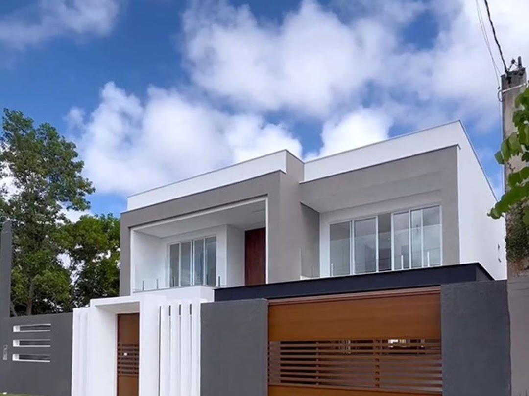 Outeiro da Glória, Porto Seguro. Set on a 525.00 m² plot, this project features a single-family residence with a total built area of 389.07 m². This high-end home enjoys morning sun and includes a living/dining room, kitchen, garage, high ceilings, 2 bathrooms, 1 bedroom, and 4 suites with balconies (comprising 1 standard suite, 2 suites with walk-in closets, and 1 master suite with a whirlpool tub and walk-in closet), a gourmet area with a barbecue, a swimming pool, and a deck. Ground floor: entrance hall, hallway, garage space, living room, dining room, 2 bathrooms, 1 bedroom, kitchen, high ceilings, gourmet area, deck, swimming pool, service area, and drying area. Upper floor: hallway, 4 suites with balconies, including 1 standard suite, 2 suites with walk-in closets, and 1 master suite with a whirlpool tub and walk-in closet.
