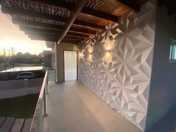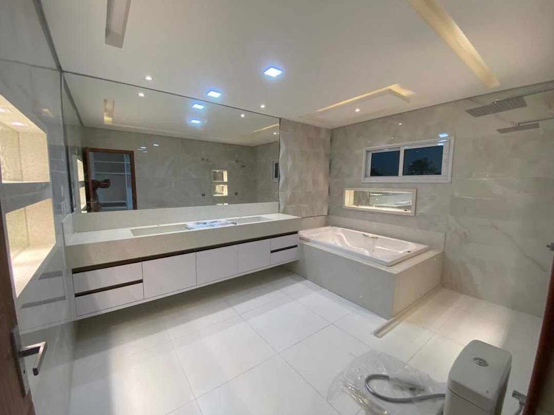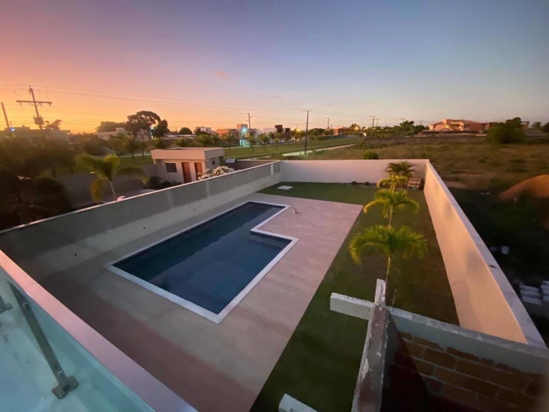 Spacious and expansive house with premium finishes in a gated community in Porto Seguro, BA • 3 suites, including a master suite with walk-in closet and bathroom featuring 2 showers, 2 sinks, and a double whirlpool tub. • Mezzanine, living room, TV room, dining room, custom-designed kitchen, gourmet veranda. • Swimming pool. • Premium finishes throughout. • Entire house designed with interior design project. • Roof entirely in paraju wood with glazed tiles. • Kitchen cabinets, closet, bathrooms all premium quality • 530 sqm lot, plus an additional 1,000 sqm adjacent lot, should the buyer wish to expand the area. • Master suite bathroom entirely in white stellar Celestone.